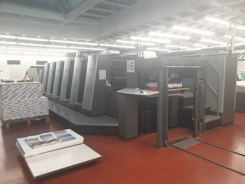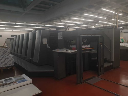 Max. paper size: 600x740 mm Smallest size: 210x350 mm Image area: 585x740 mm Speed: 15.000 sh/h Power consumption: 70 kw Length: 10580 mm Width: 2975 mm Height: 1940 mm Weight approx.: 31640 kg Colors: 6+L HS Code: 84431300 - HS Codes Classification of Other offset printing machinery Counter approx.: 75 mio. F US Size <> Alcolor automatic Film Dampening <> CP 2000 Control Center <> Autoplate (semi-automatic plate loader) <> Automatic blanket, roller and impression-cylinder washing device <> Preset plus in feeder <> Preset plus in delivery <> TECHNOTRANS