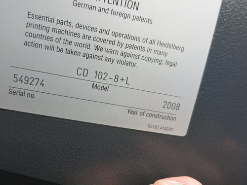 Max. paper size: 720x1020mm Smallest size: 280x420 mm Image area: 710x1020 mm Speed: 15.000 sh/h Power consumption: 107 kw/hp Length: 18050 mm Width: 2990 mm Height: 2170 mm Weight approx.: 63480 kg Stock thickness: 0.03 - upto 1,00 mm Colors: 8 HS Code: 84431300 - HS Codes Classification of Other offset printing machinery Counter approx.: 230 mio Model CD 102-8+LX <> Coater with chamber doctor blades + Anilox roller <> Preset Plus X2 delivery <> Prinect Press Center CP 2000 <> Image Control <> TECHNOTRANS combi refrigeration and ink temp control <> Autoplate (semi-automatic plate loader) <> Automatic blanket, roller and impression-cylinder washing device <> Preset plus in feeder <> Non-stop feeder <> Clean CleanStar powder sucker <> DryStar 3000 combination IR-dryer <> Weko AP500 Powder Spray <> Electromechanic double-sheet control <> Electronic Front Lay Control <> Electronic pull lay control <> AirStar Pro Air cabinet water-cooledH