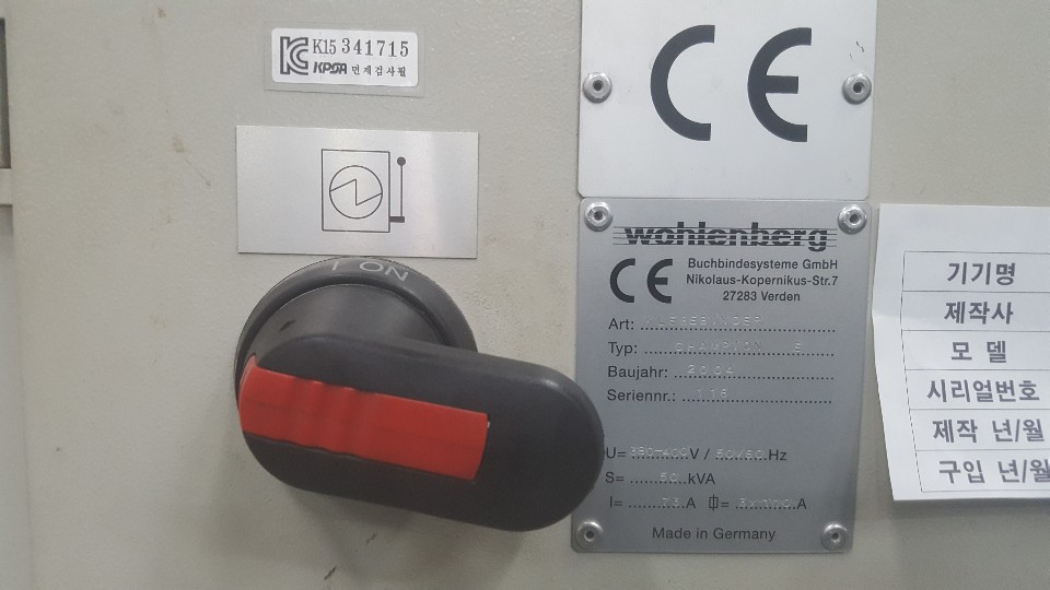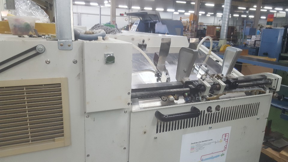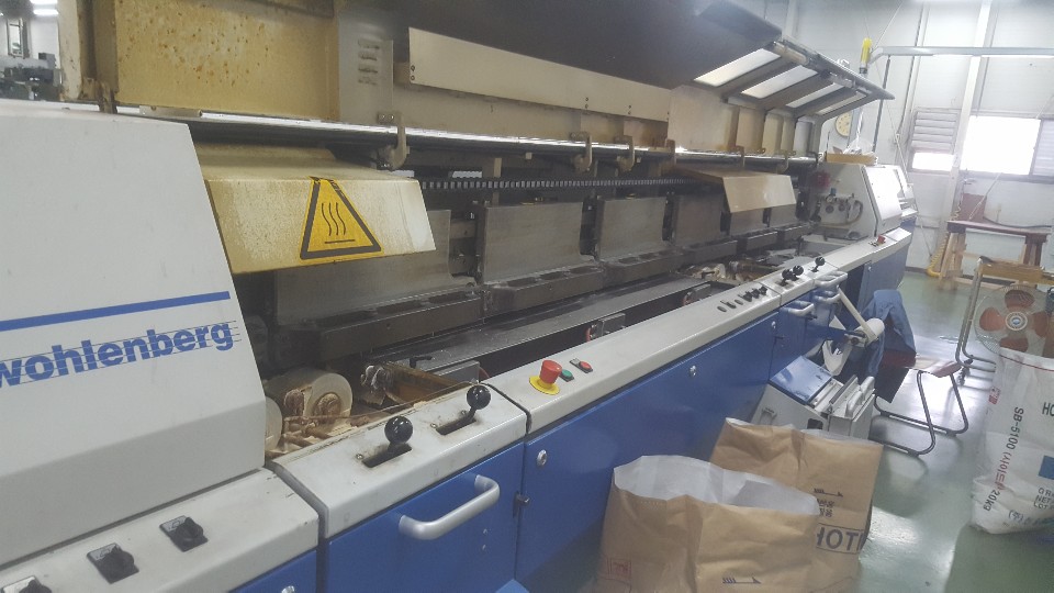Wohlenberg Champion 36 clamp Perfect Binding Line Year: 2004 Model: Champion E Equipped with Korean Gatherer with 36 stations Wohlenberg Collar Folder Wohlenberg Champion E perfect binder with 36 clamps PUR Yoshino three knife trimmer Conveyor Still in production