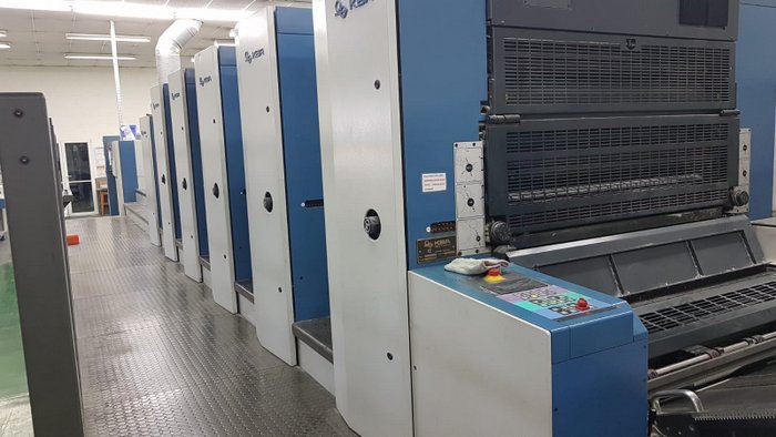 2005 KBA RAPIDA 105-5+L Year: 2005 184 mill semi-automatic (PWHA) DENSITRONIC-S LOGOTRONIC BASIC ErgoTronic: Color control Colortronic: for ink + register Preset Feeder + Delivery all washers Varidamp dampening units double sheet control: ultrasound powder spray: Weko AP 262 quick-acting clamps, for plates Coating tower (L) Delivery extensión ALV2 Non-stop system Antistatic Equipment KERSTEN Register Bacher chambered doctor blade system: Harris & Bruno IR dryer: Grafix / KBA Parfid dry Hot air drying WEKO AP 262 with ionization and operation via control console Cooling unit BALDWIN, presses without washing system: 'Basic-Liner Machine running - avaialble immediately Conditions generals excellent