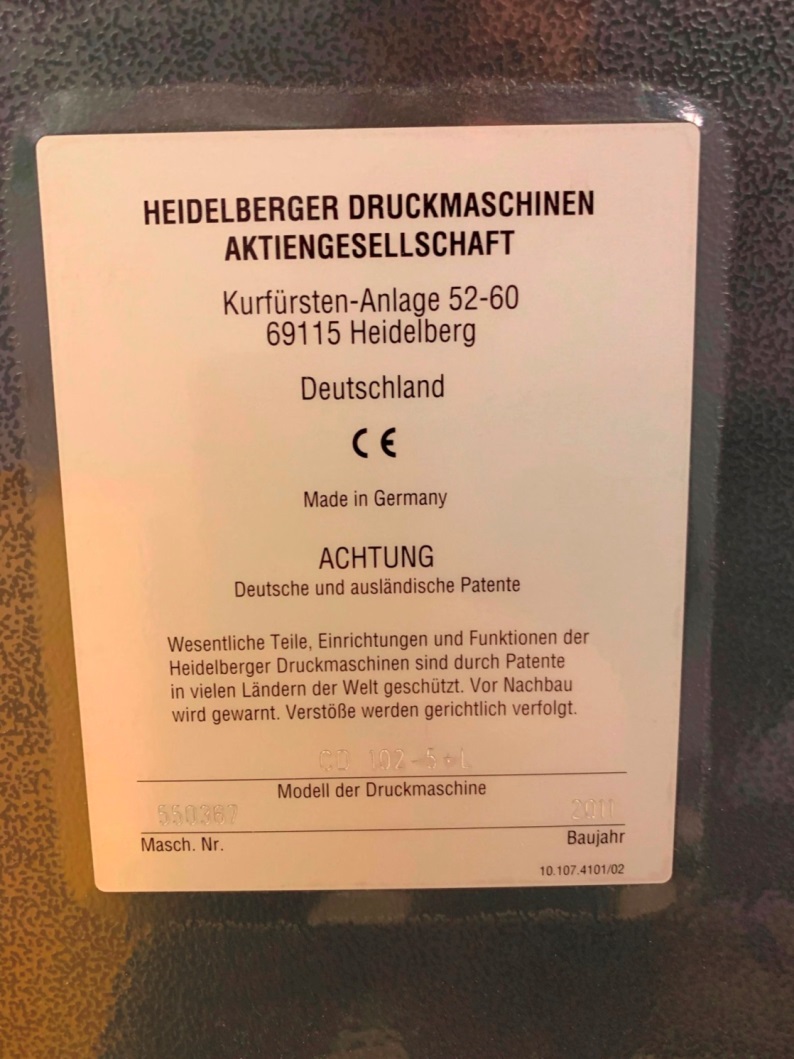 2011 Heidelberg CD 102-5+LX REF:2021074